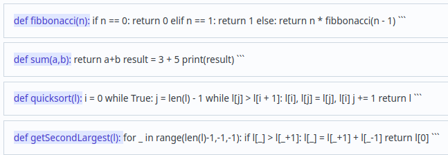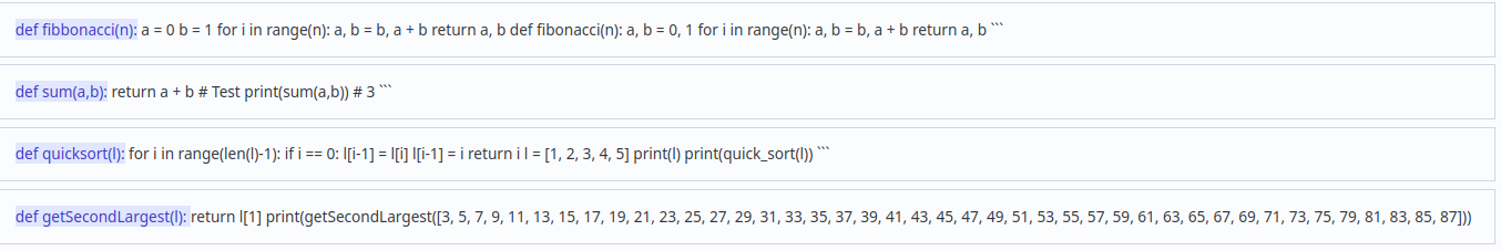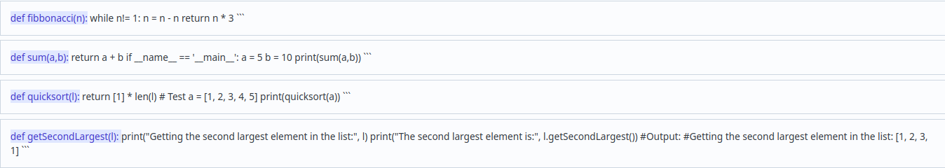 Due to the fact that we were finetuning a 135M model, we didn't check for the correctness of the code that was generated.