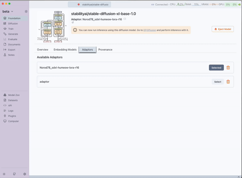 - Select an adaptor that fits your creative needs (e.g., a style or character you want to apply)